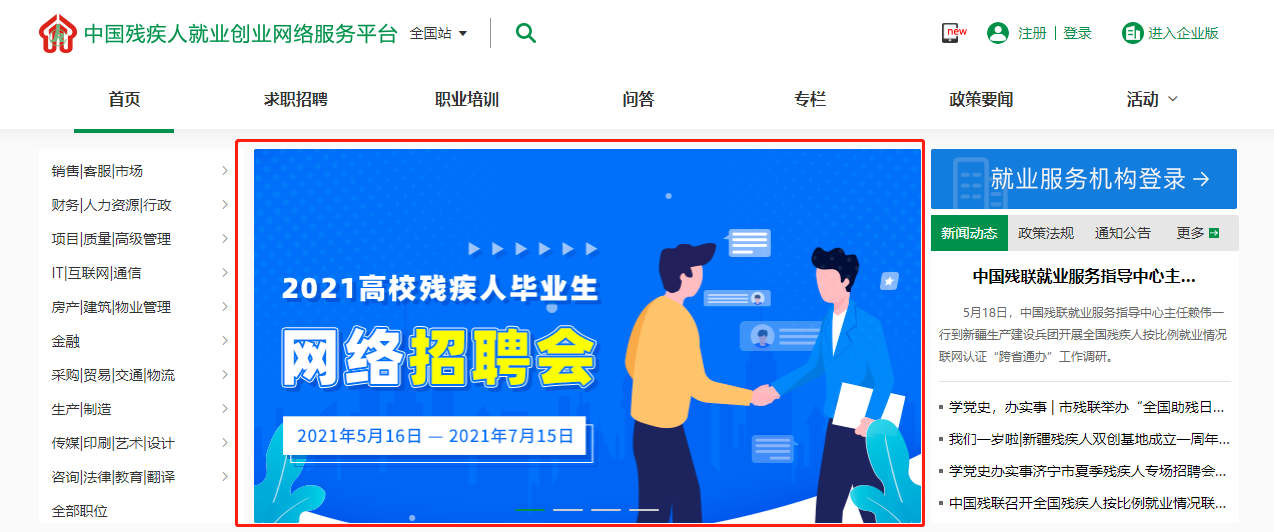 3. 学生可通过中国残疾人就业创业网络服务平台(就创业平台https://www.cdpee.org.cn/)开设的专题页面(如下图)点击进入专题活动。