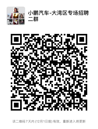 小鹏汽车2022校园招聘大湾区专属微信群https://imgtu.com/i/oi91KJ(保存后扫码即可加入社群),受疫情影响线下宣讲会调整为线上,宣讲时间11月30日周二晚上18:30,进群获取会议链接。岗位薪酬8~12k,工作地点覆盖全国50+城市,offer数量1200+,就等你来!