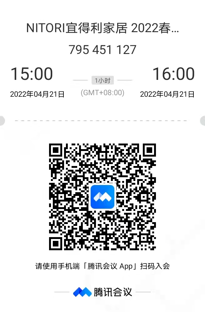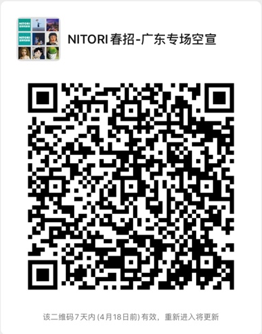 届时欢迎各位同学来了解NITORI宜得利家居,加入NITORI宜得利家居!如有同学想提前了解信息,可扫码进入如下微信群,群内工作人员可为同学们对职位申请,简历投递等问题进行答疑解惑,并在会前帮助学生进入会议。