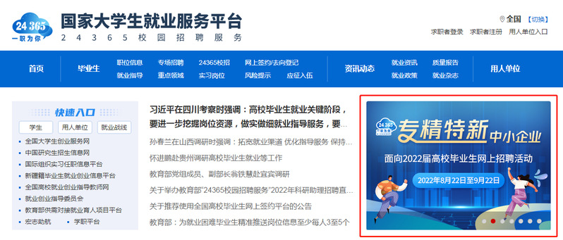 为贯彻落实《国务院办公厅关于进一步做好高校毕业生等青年就业创业工作的通知》,加大专精特新中小企业引才育才力度,助力做好2022届全国普通高等学校毕业生就业工作,工业和信息化部、教育部于2022年8月22日至9月22日举办专精特新中小企业面向2022届高校毕业生网上招聘活动。现需动员我校毕业生积极上网求职应聘,有关事项通知如下: