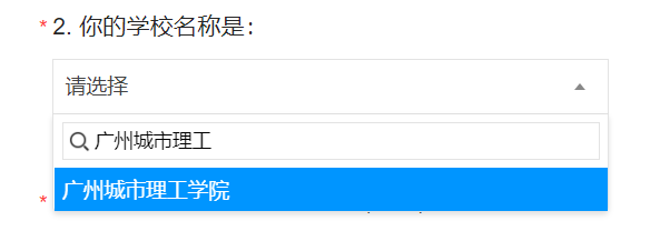 注意:广东省教育厅的调研中,需要在第二题“你的学校名称是”搜索或选择“广州城市理工学院”