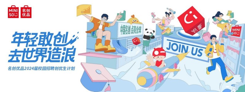 作为以IP设计为特色的生活潮流品牌,名创优品的经营哲学是“开心哲学”,希望用非常亲民的价格和“好看、好玩、好用”的高品质产品,让消费者更轻松地享受美好生活,这也是名创优品的企业使命和创业初心。名创优品不仅懂年轻人,更相信年轻人的力量,期待您的加入,与我们一起“年轻敢创,去世界造浪”。