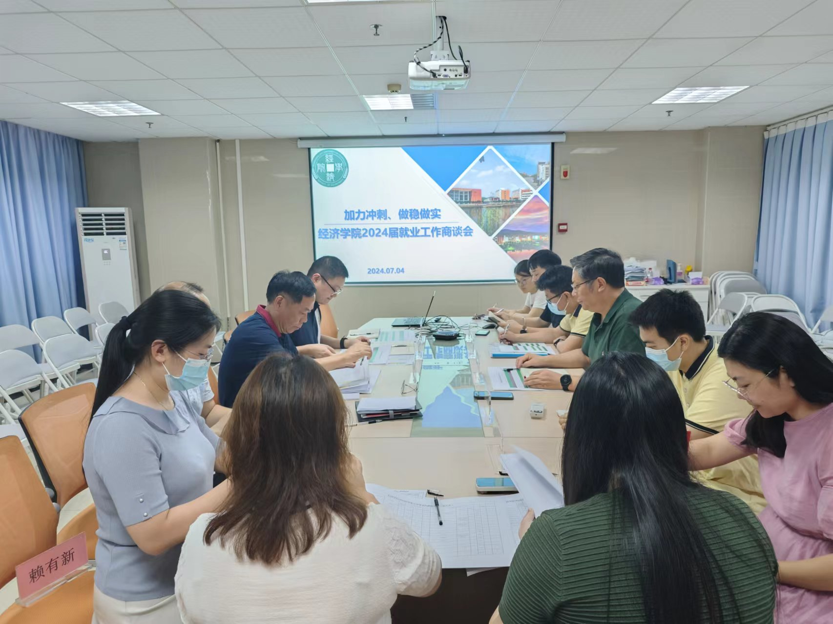 次日,刘洊波副校长带队,携就业指导中心一行到外国语学院、经济学院开展座谈,与学院领导班子、毕业班辅导员、班主任及就业创业专员展开深入交流。