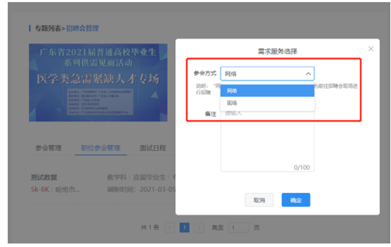 5)选择职位加入专题,选择需求服务(网络或现场),等待审核;