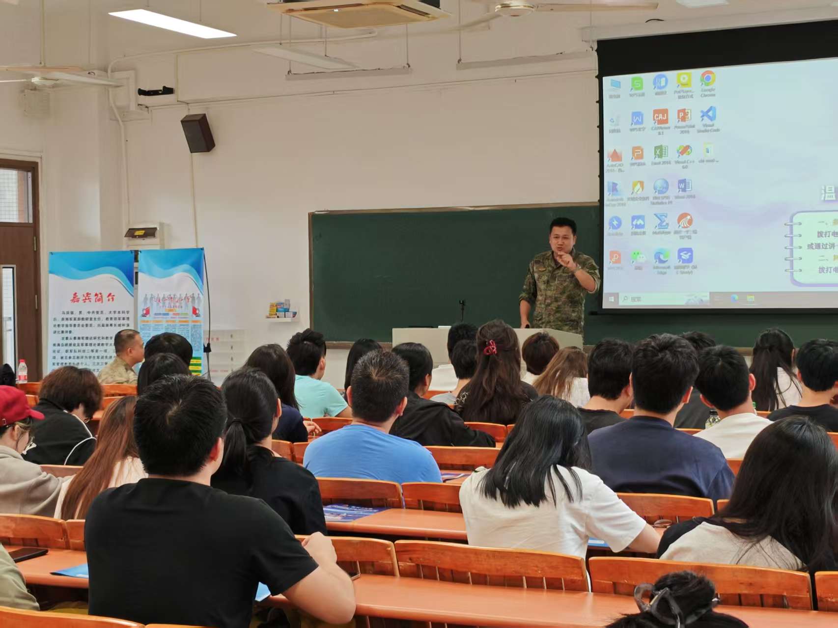 之后花都区人民武装部朱毅科长为同学们详细讲解了大学生参军入伍优惠政策包括学费减免、就业保障等方面的优惠措施。同时,朱毅科长还详细讲解了参军条件,包括年龄、身体条件、政治素质等方面的要求,让同学们对参军入伍有了更加清晰的认识。